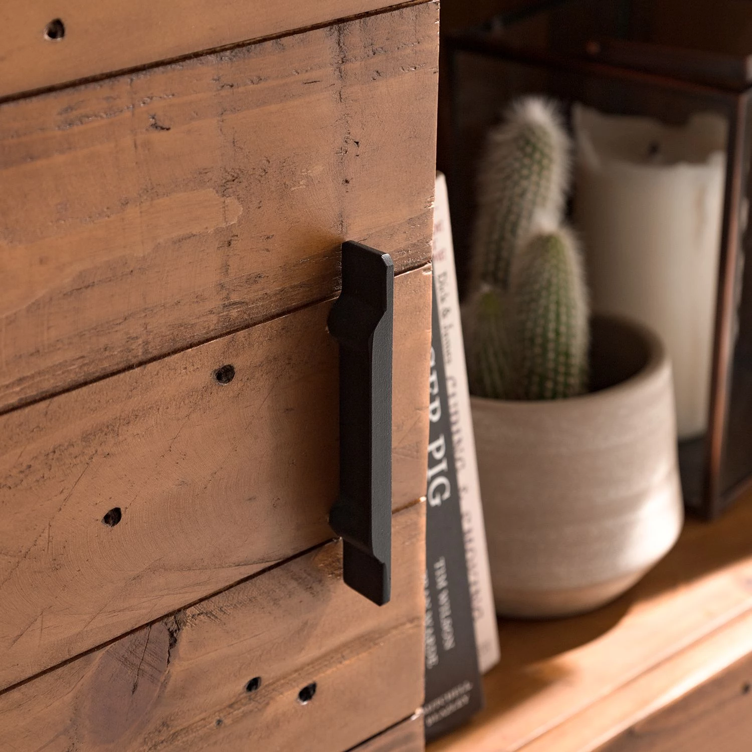 - Façade et corps : pin recyclé verni