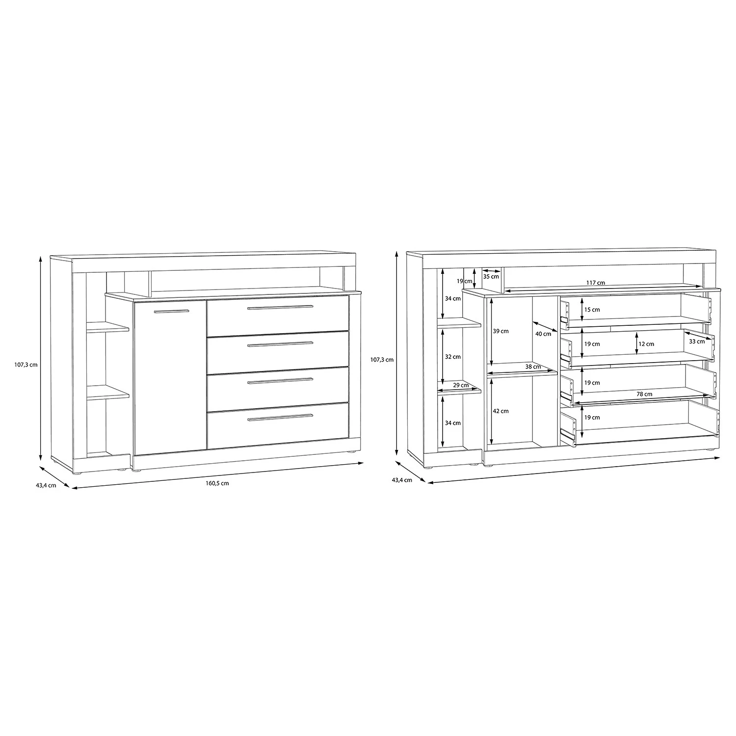 - Contenu de la livraison : Buffet sans accessoires