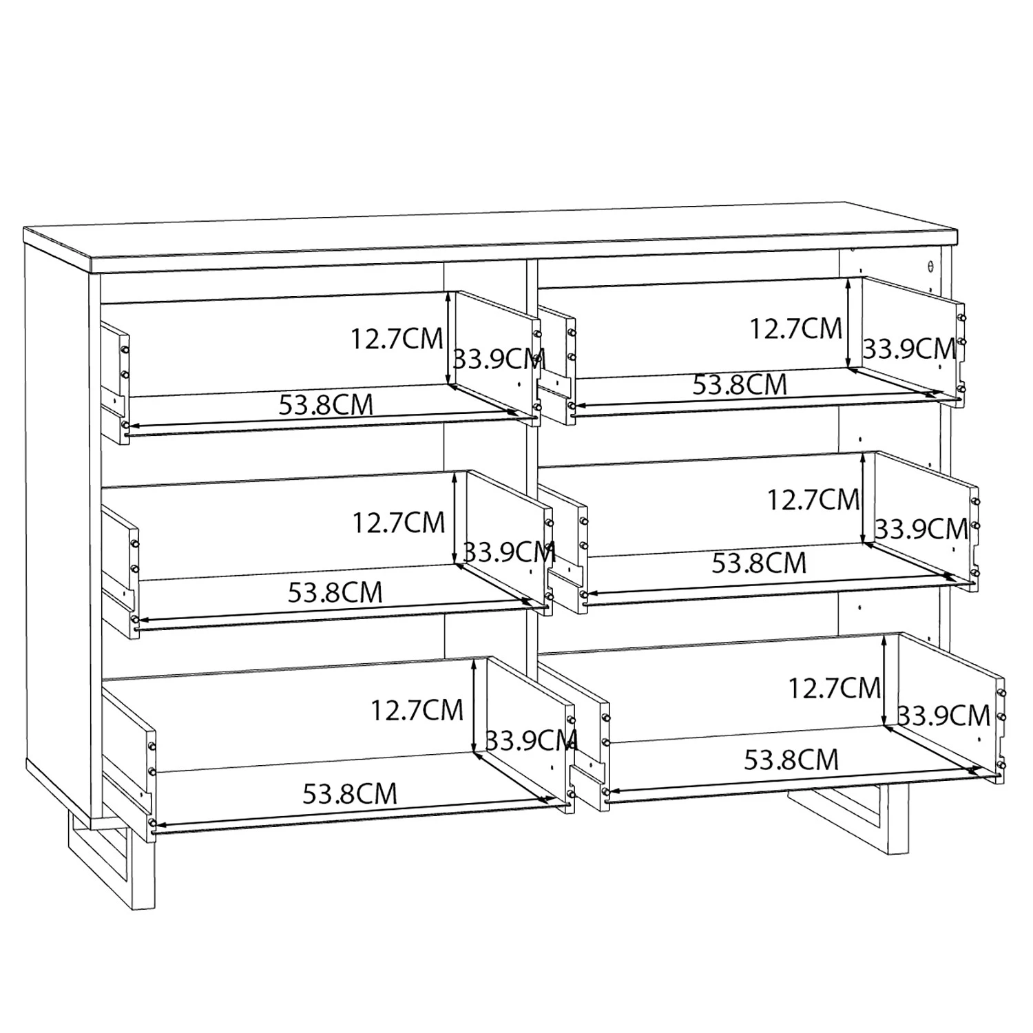 - Dimensions intérieures du tiroir : 53,5 x 33,5 cm