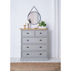 - Tiroirs et portes coulissantes : bois de caoutchouc massif, verni