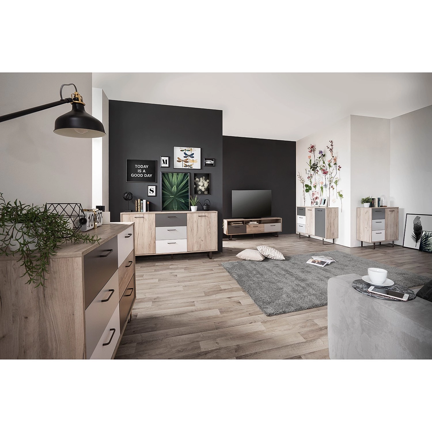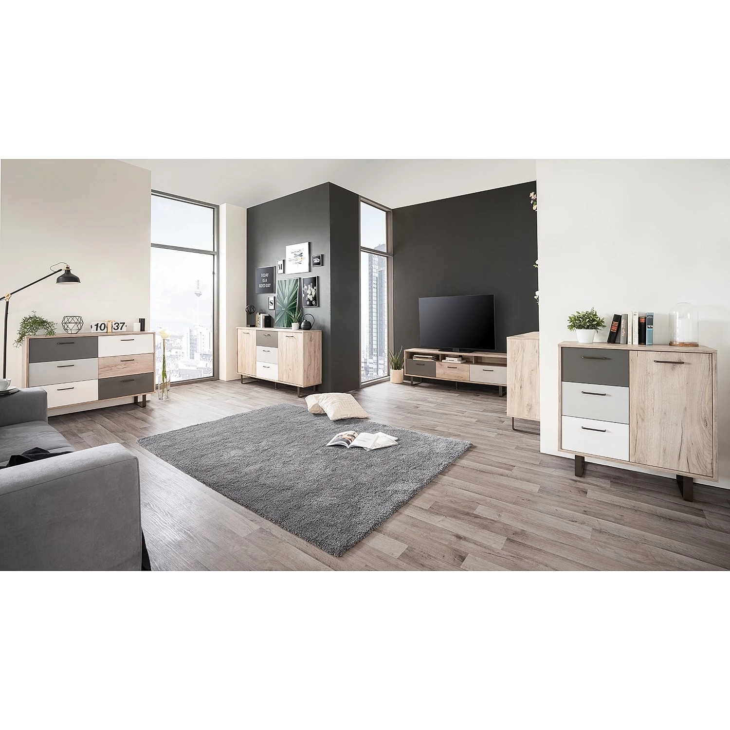 Norrwood Commode Brookton II – Multicolore / Imitation chêne