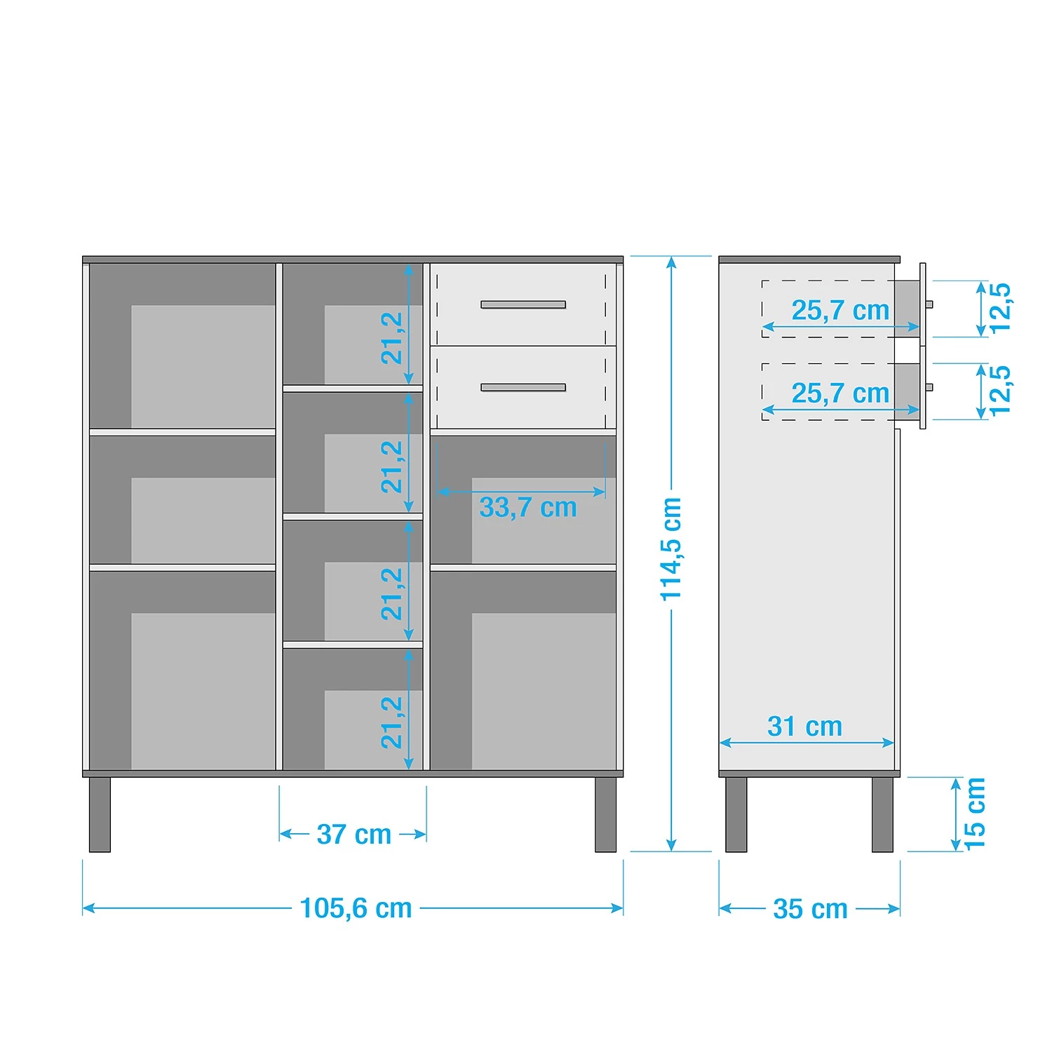 - Tiroirs : 33,7 x 12,5 x 25,7 cm chaque